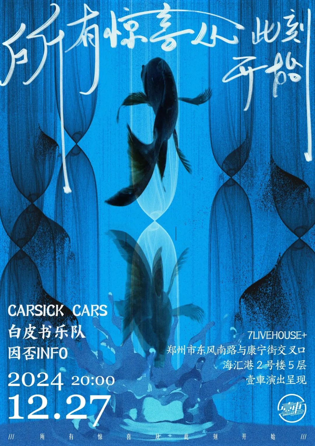 12月27日「所有惊喜从此刻开始」,这是一场或许突然的,但更是迟来的、惊喜的见面。Carsick Carsx白皮书乐队x因否INFO,两支压轴份量的乐队和新兴潜力乐队组成的拼盘。