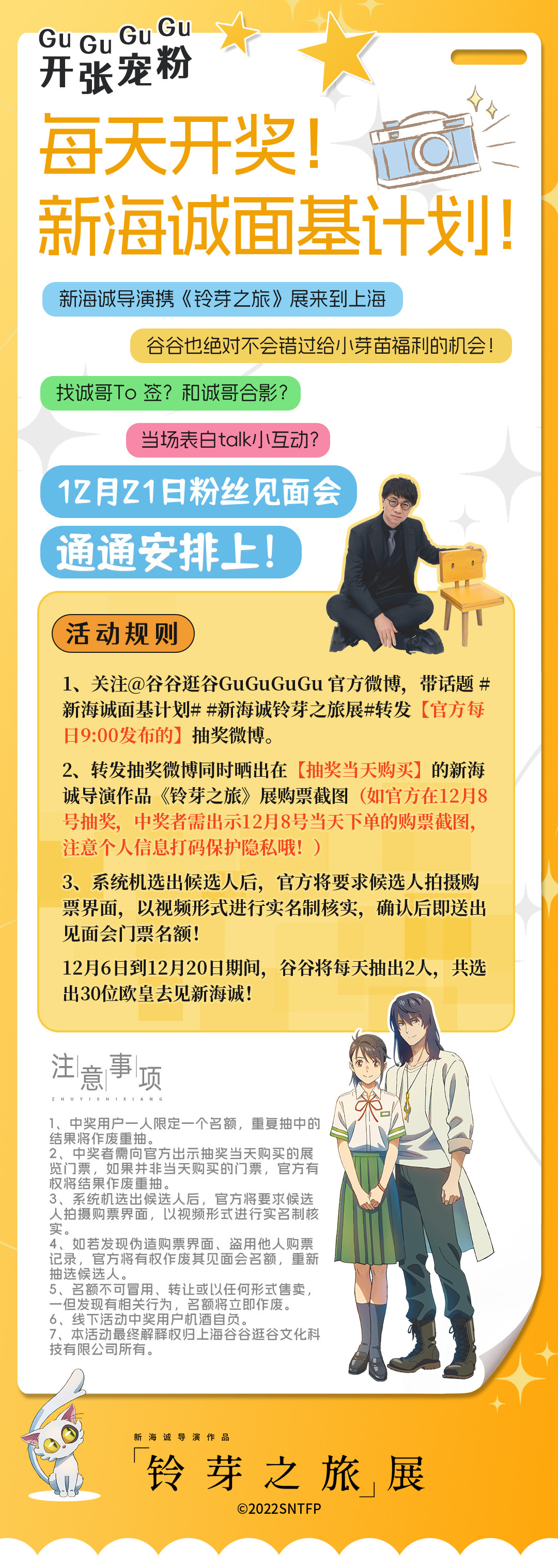 上海·新海诚导演作品《铃芽之旅》展 丨 购票抽新海诚见面会门票丨 超限定复刻原画发售时间、地点、门票价格