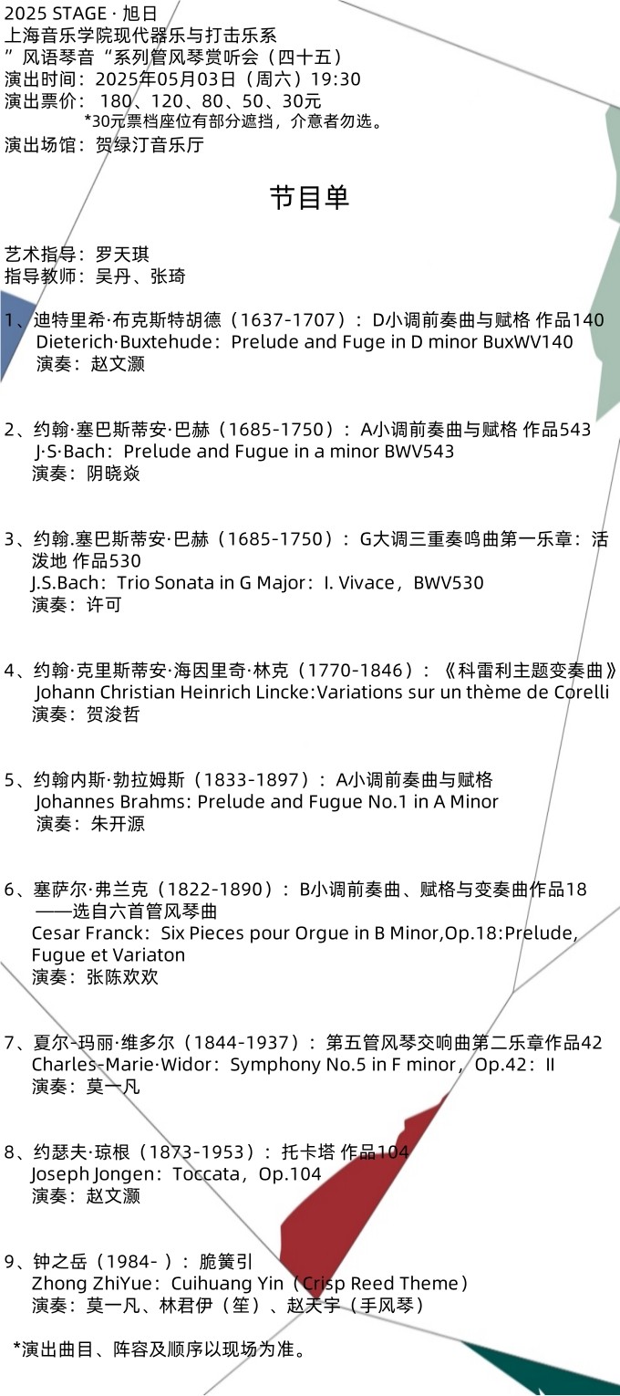 2025 STAGE · 旭日上海音乐学院现代器乐与打击乐系 ”风语琴音“系列管风琴赏听会(四十五)观演指南