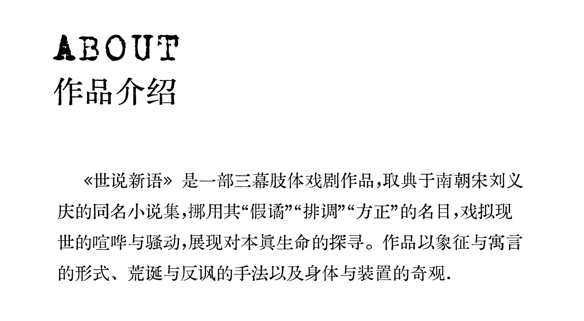 第八届“深圳舞蹈月"优秀展演剧目:汤成龙《世说新语》肢体戏剧详情