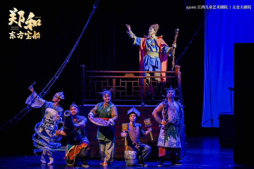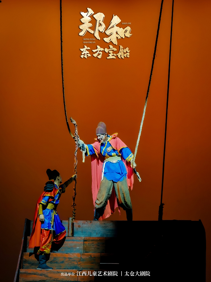 儿童剧《郑和·东方宝船》以郑和下西洋历史为依托,选取更适合儿童剧的表达方式,将郑和宝船的牵星板、舵杆等部件拟人化,时间选在郑和最后一次下西洋前夕。