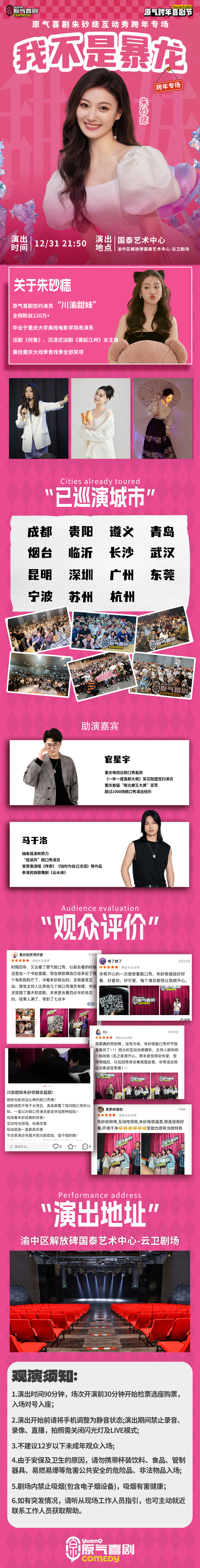 重庆【跨年夜】观音桥|原气喜剧九日《九个太阳》互动脱口秀专场|茂业天地12月31日演将于2025.12.31 21:50 周三在原气喜剧脱口秀剧场-观音桥茂业天地店上演,门票价格:98-208。